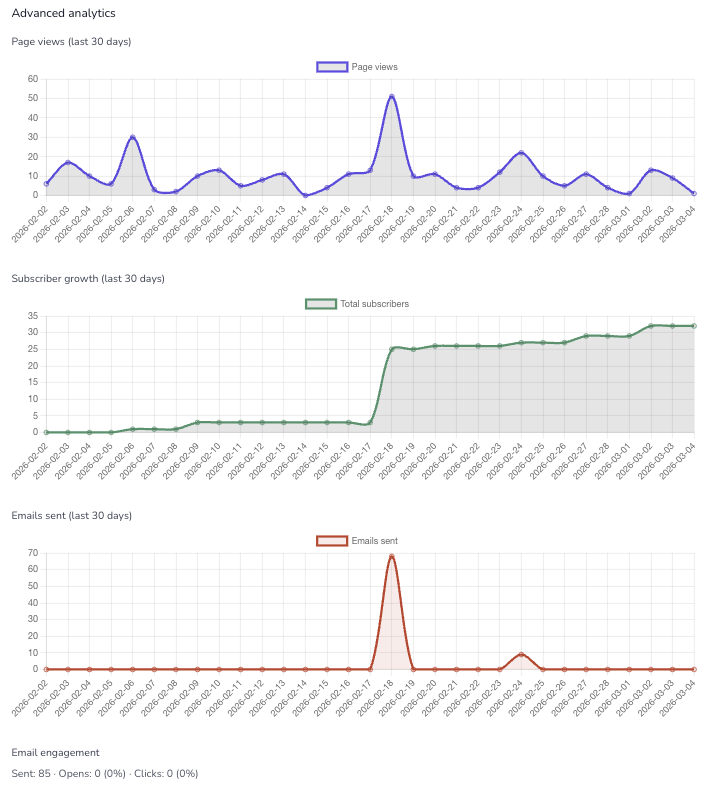 - New information and graphing for Premium users, detailing changelog views, subscriber growth and email engagement over time.