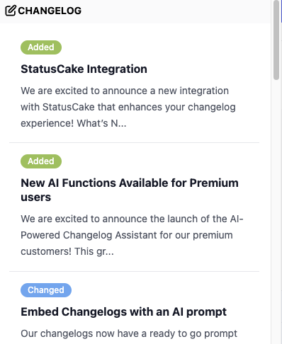 • Enhanced Communication: Keep your users informed about the status of your services directly within the changelog.